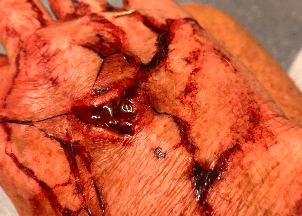 Først da oppdaget jeg at det rant blod fra ansiktet og fra et dypt kutt i hånden. Schæferen hadde stanget bakhodet i nesa så jeg blødde neseblod. Verre var det med hånden som var revet opp.