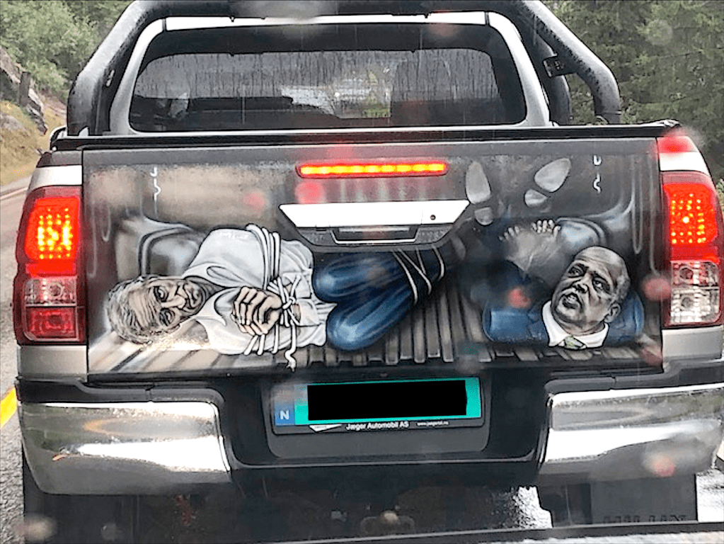 Dekorasjon på en pickup et sted i Hallingdal. Foto: Øystein Steiro Sr.